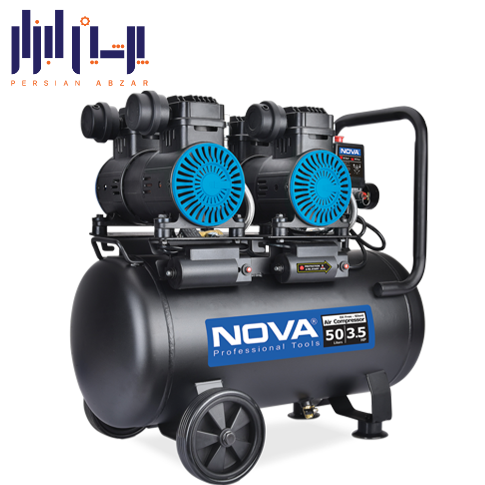 کمپرسور باد سایلنت 50 لیتری دو موتوره مدل 9151، یکی از انواع محصولات شرکت نووا می باشد که با ویژگی های منحصر به فردی تولید شده و همانطور که از نامش مشخص است،این محصول بی صدا بوده و به روغن کاری نیاز ندارد و وظیفه آن فشرده سازی، کم کردن حجم ، متراکم کردن باد و تامین انرژی لازم برای راه اندازی ابزارهای بادی یا پنوماتیک از جمله منگنه،بکس بادی و… در کارگاه ها و کارخانجات می باشد.